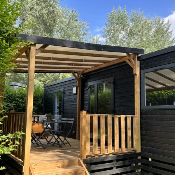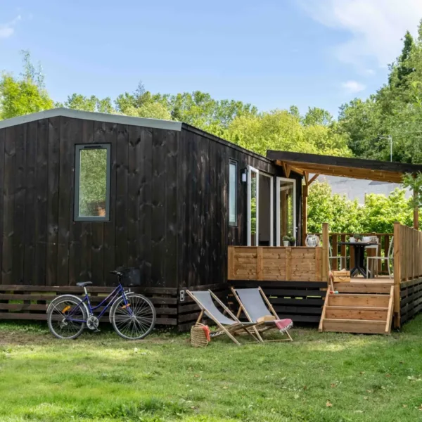 The Signature Cottage at our Slow Village Saumur campsite is a comfortable interlude where wood and light meet. Designed as a real vacation home, it offers spacious living areas and a soft decor inspired by the Loire landscapes. Its large terrace overlooking nature is the perfect place to share an open-air meal, savor a glass of local wine at sunset or simply contemplate the tranquility of the banks of the Loire.