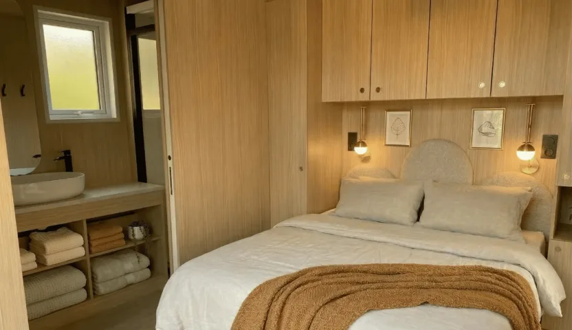Nos emplacements camping Signature en Anjou allient confort haut de gamme et nature préservée, avec kitchenette, sanitaire privé pour un séjour inoubliable.