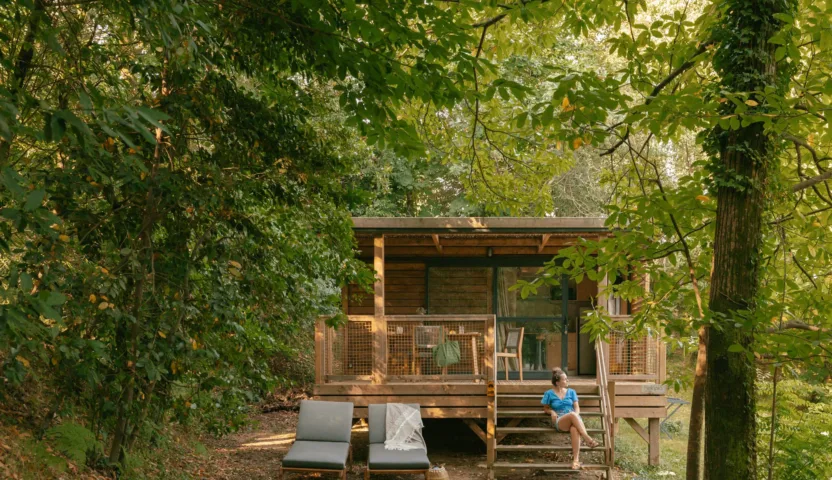 Our 2-bedroom Cabane Confort has all the facilities you need for a rejuvenating stay in the Cévennes.