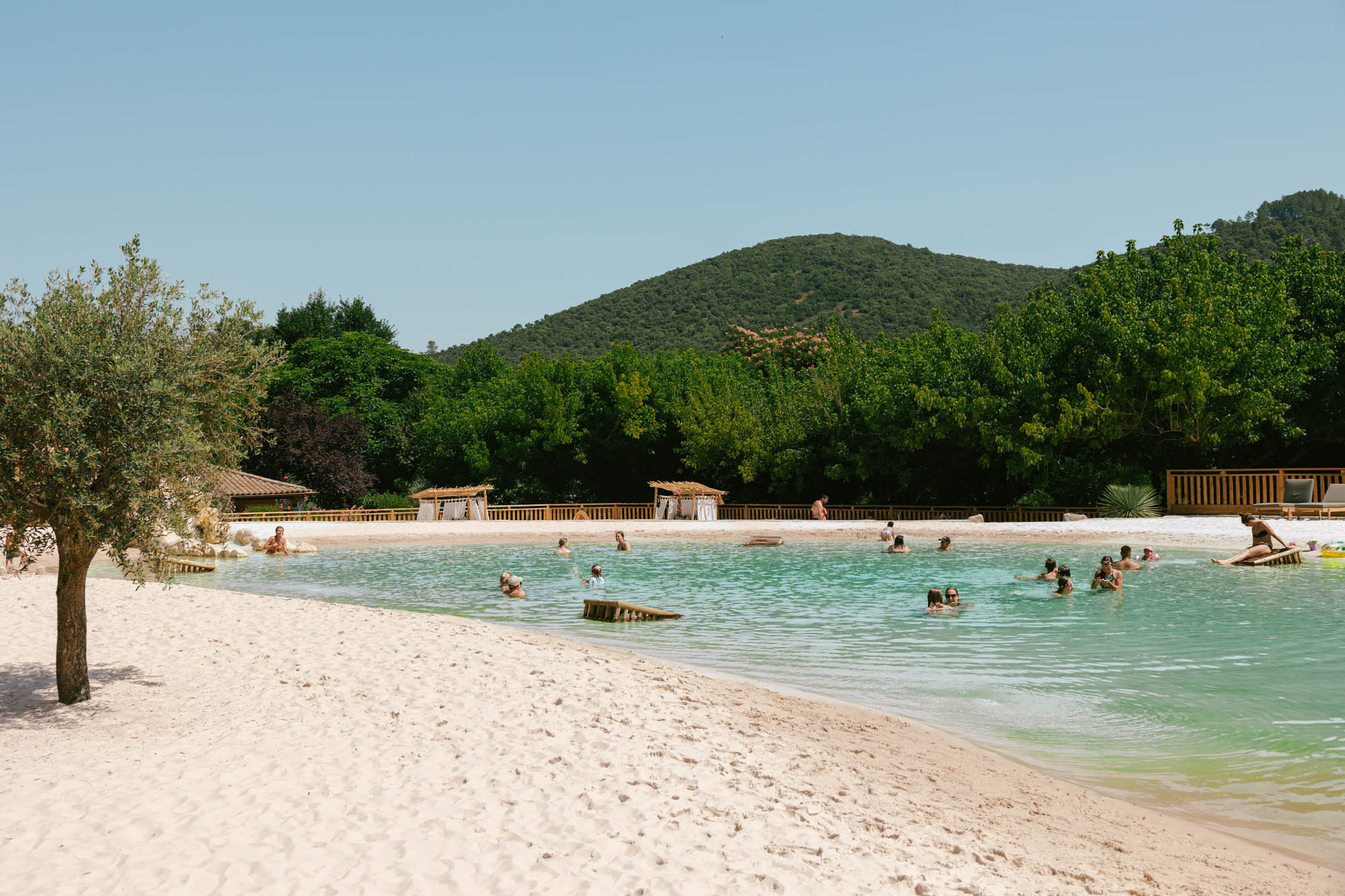 Tómese un respiro en nuestra laguna de 600 m2 en el corazón del Slow Village. Diseñado como un eco del paisaje natural, bordeado de arena fina y vegetación autóctona, este apacible lugar invita a hacer una pausa. Acomódese en una tumbona o un solárium, sumérjase en el encanto de las Cevenas y saboree el placer de bajar el ritmo.