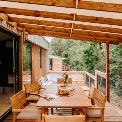 De madera, con un diseño moderno y de alta gama, está totalmente equipada, con 2 cuartos de baño para un confort aún mayor. Con su amplia terraza y sus instalaciones de estilo hotelero, ¡te sentirás como en casa!