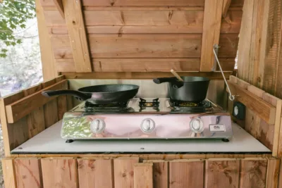 • Cuisiner sur son emplacement avec son équipement privé dans le calme du village