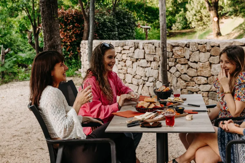 Sur la terrasse, on partage un verre entre amis ou un dîner en famille, bercé par la lumière dorée du soir et les parfums de notre camping dans le Gard. Le bar prolonge les soirées d’été avec sa sélection de vins locaux et ses apéritifs aux saveurs du terroir, à deux pas de la piscine et des rires d’enfants.