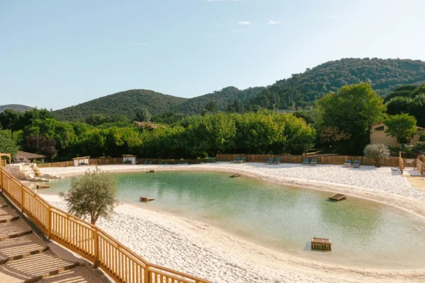 Puis laissez-vous tenter par l’espace aquatique de notre camping dans le Gard : une piscine extérieure chauffée, un toboggan à deux pistes, une pataugeoire pour les plus petits et un coin plage-solarium pour savourer le soleil du Sud. Le bassin délivre une vue sur la garrigue et les collines dorées. On y nage, on s’y repose, on y partage un moment simple et joyeux : l’essence même des vacances en camping dans le Gard.