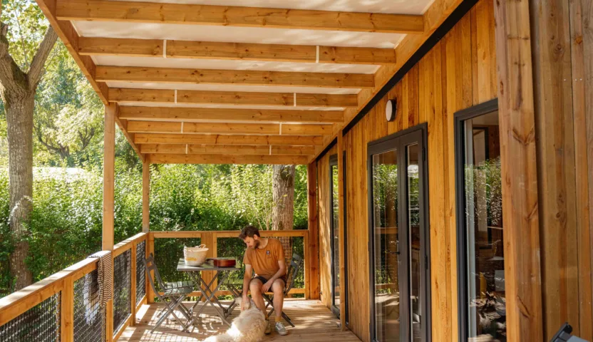 Profitez d’un cottage 2 chambres en bois haut de gamme et tout équipé. L'hébergement idéal pour vos vacances en famille dans un écrin de verdure !