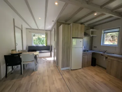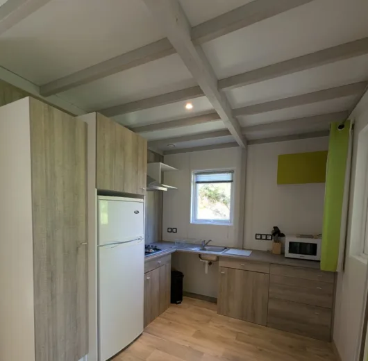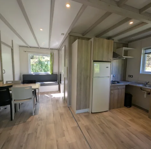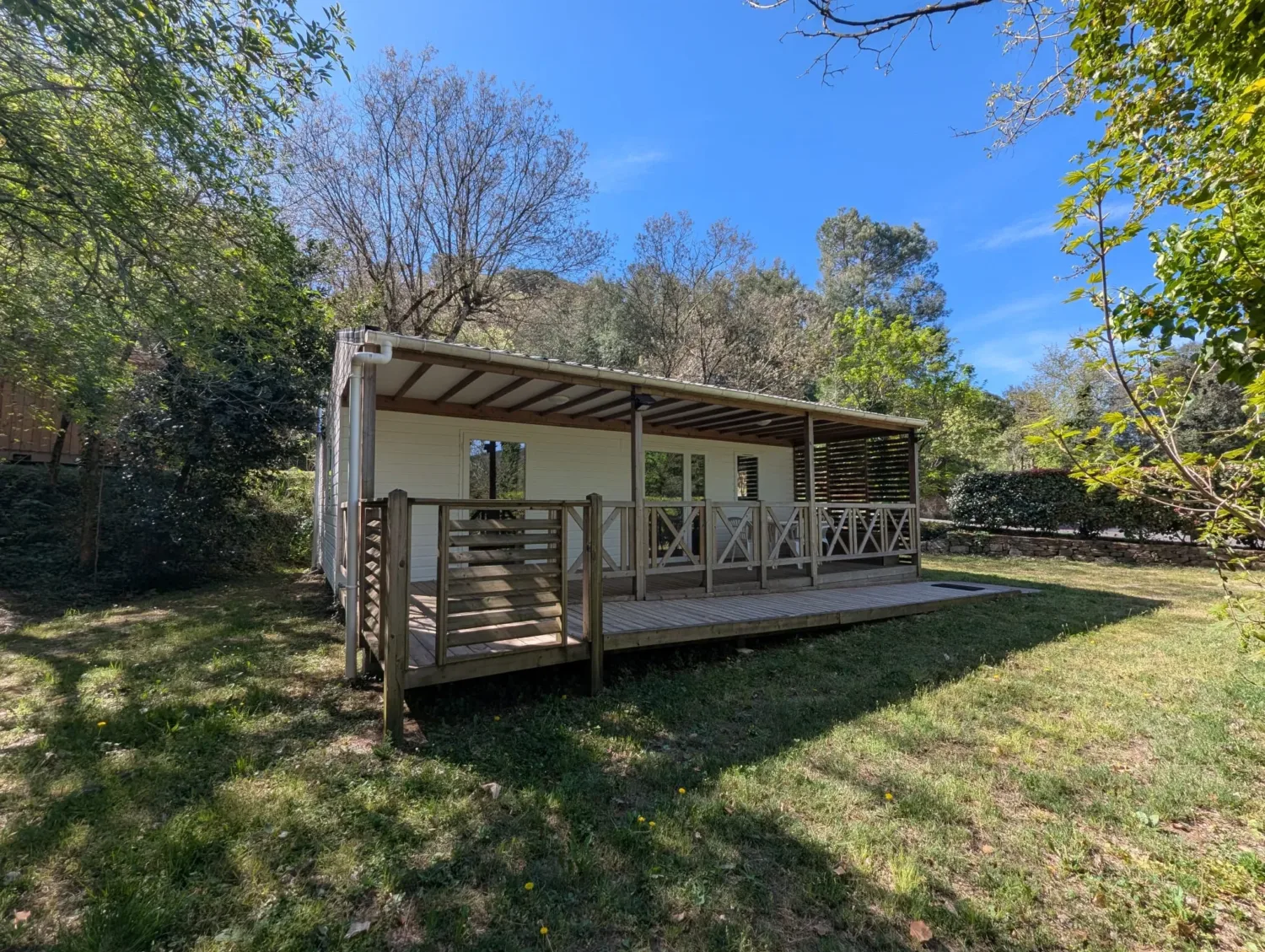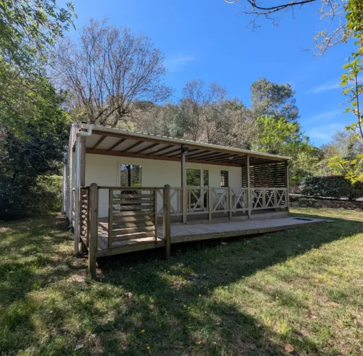 En bois, haut de gamme et au design moderne, il est tout équipé, avec 2 salles de bain pour toujours plus de confort. Avec sa grande terrasse et ses prestations hôtelières, vous vous sentirez comme à la maison !