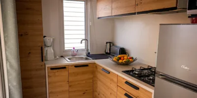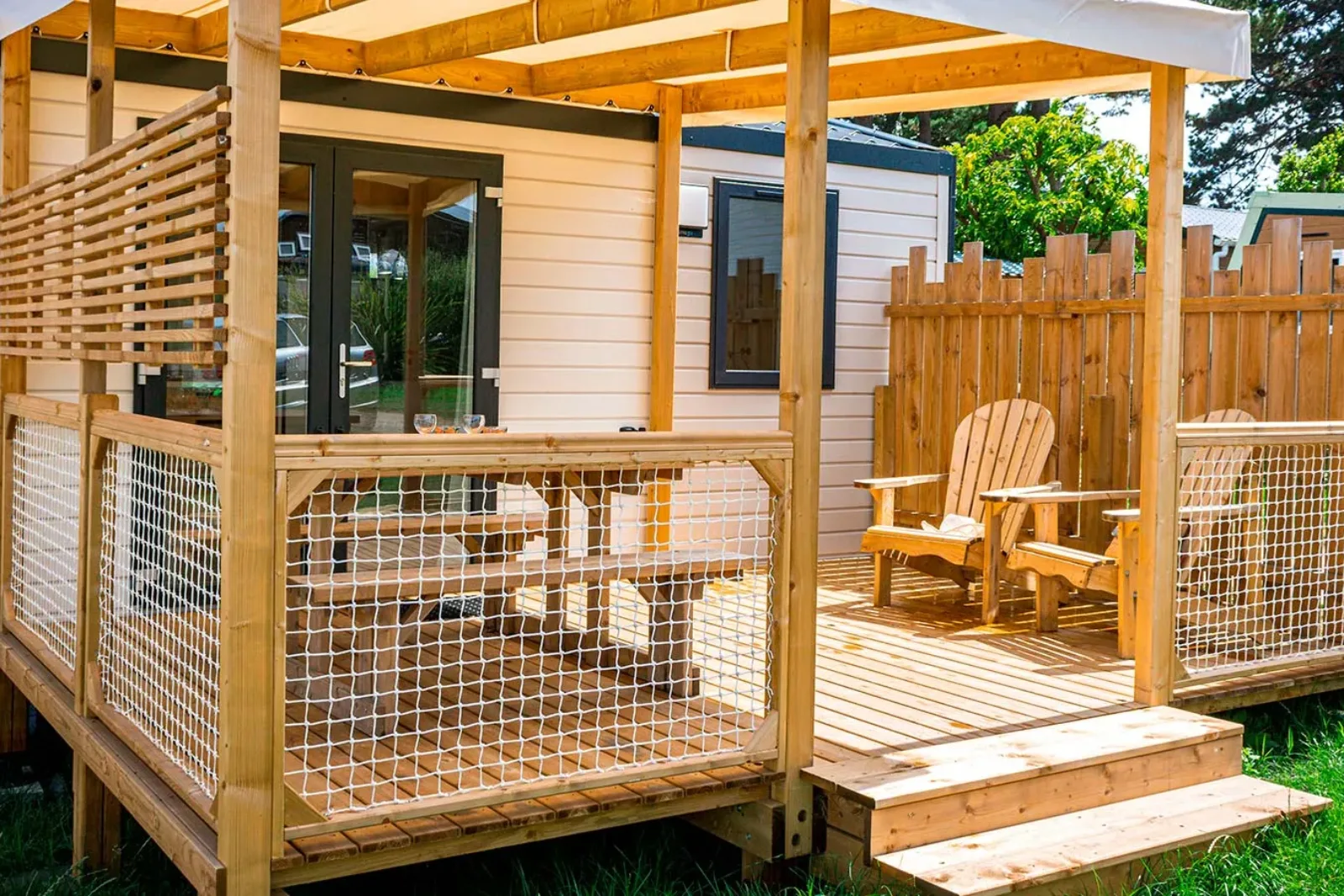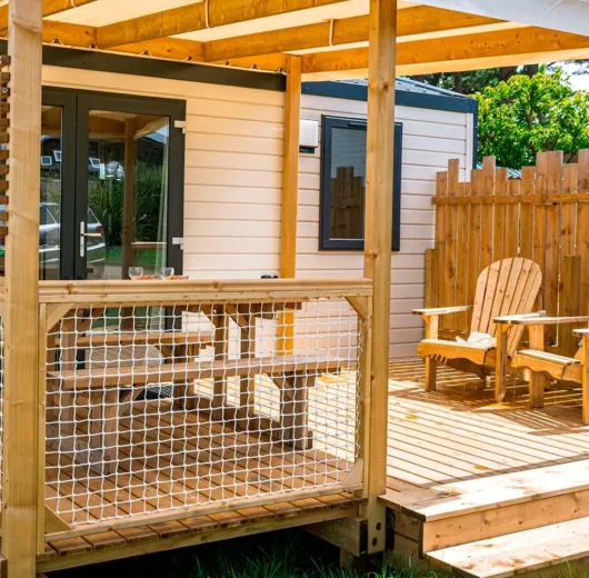 En bois, haut de gamme et au design moderne, il est tout équipé, avec 2 salles de bain pour toujours plus de confort. Avec sa grande terrasse et ses prestations hôtelières, vous vous sentirez comme à la maison !