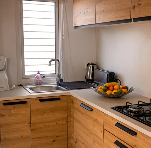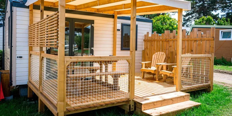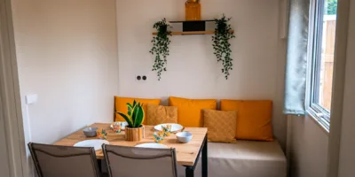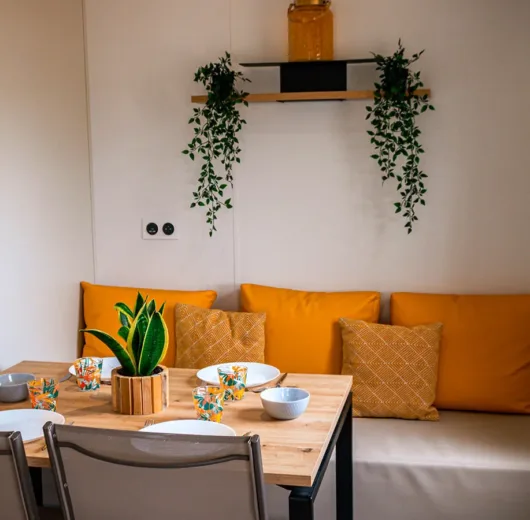 Notre Mobil-home Classique Confort 2 chambres vous offre tout le confort nécessaire pour profiter pleinement d’un séjour reposant sur l’île.