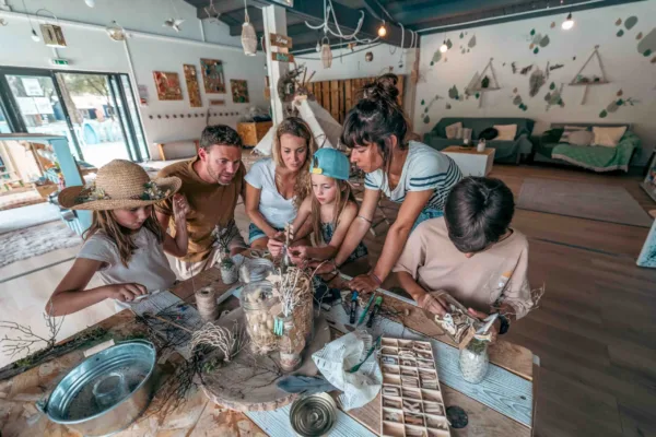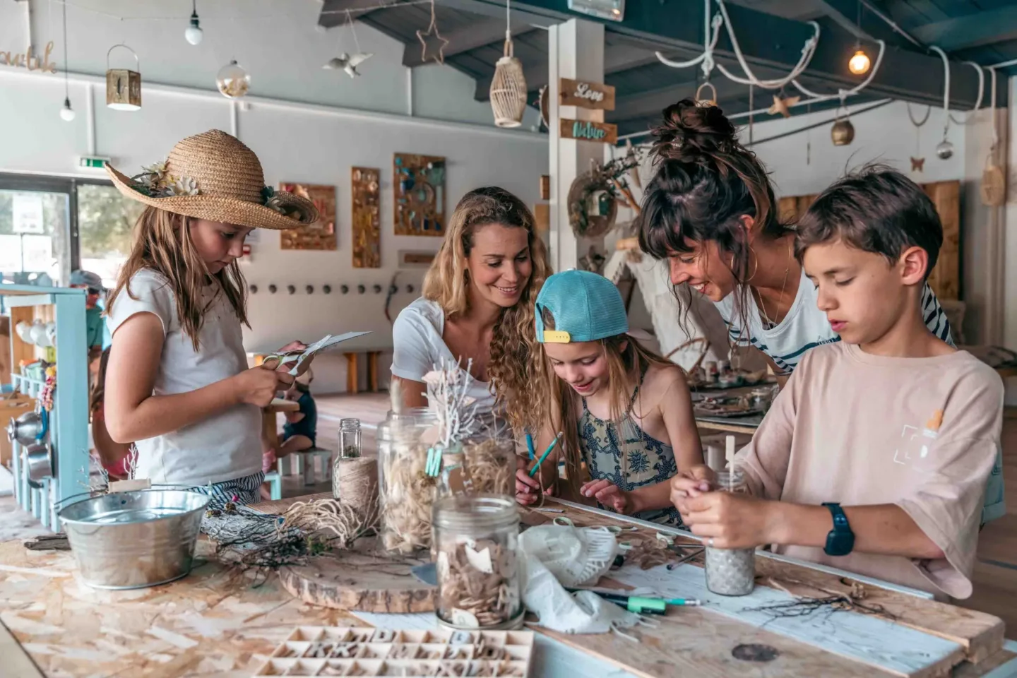 È anche uno spazio creativo dove l'immaginazione ha un posto d'onore. Utilizzando materiali riciclati o naturali, grandi e piccini possono creare oggetti unici in base ai loro desideri. Ogni attività è pensata per risvegliare la creatività e incoraggiare un consumo più responsabile. Qui tutto è realizzato sul posto, con ciò che la natura e il tempo hanno da offrire.