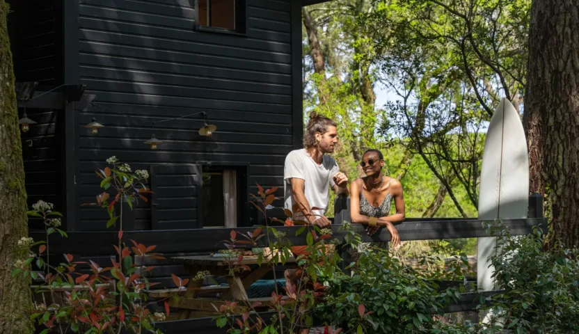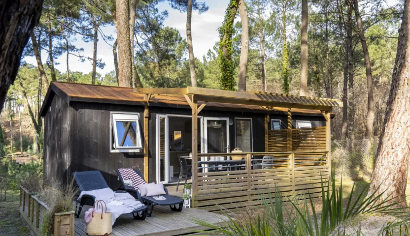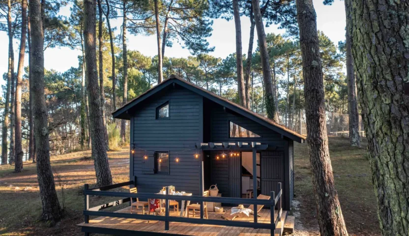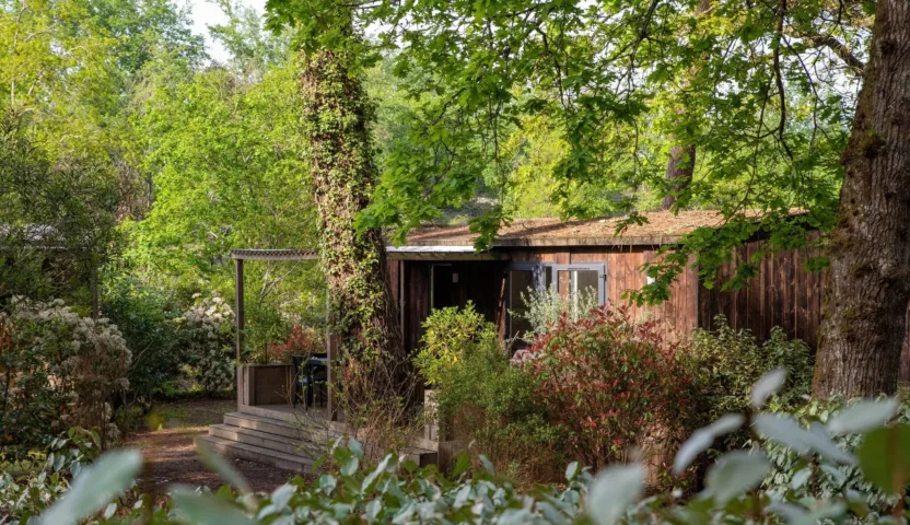 Onze eersteklas hut, genesteld in ons openluchthotel, garandeert je een uitzonderlijk verblijf in het hart van de Landes.