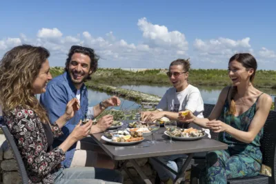 Onze specialiteit? Een uniek concept waarmee grote groepen verschillende stands van lokale producenten kunnen ontdekken. Maak kennis met onze oesterkwekers en regionale ambachtslieden die hun expertise komen delen. Het is een gezellige ervaring en een echte onderdompeling in de regio.